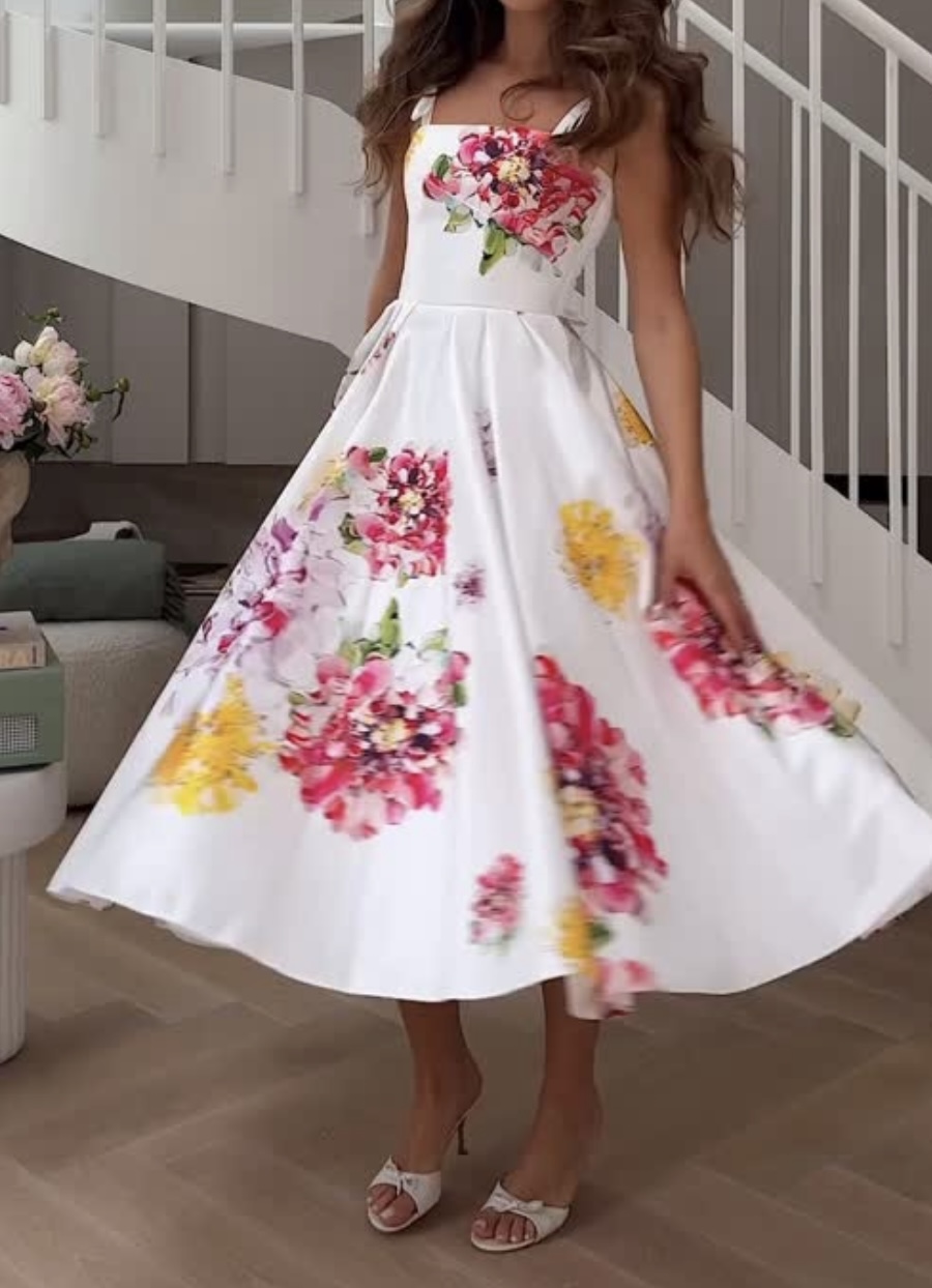 Elegant Printed Slim-Fit Sling Dress