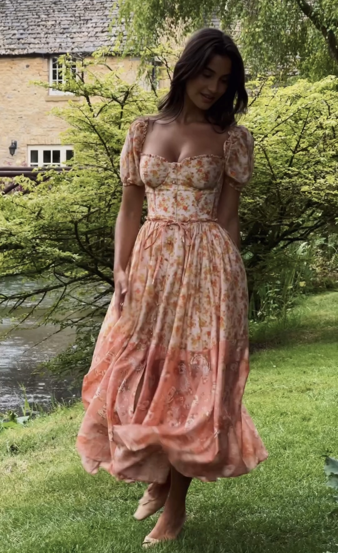 Fashion Puff Sleeve French Square Collar Floral Skirt