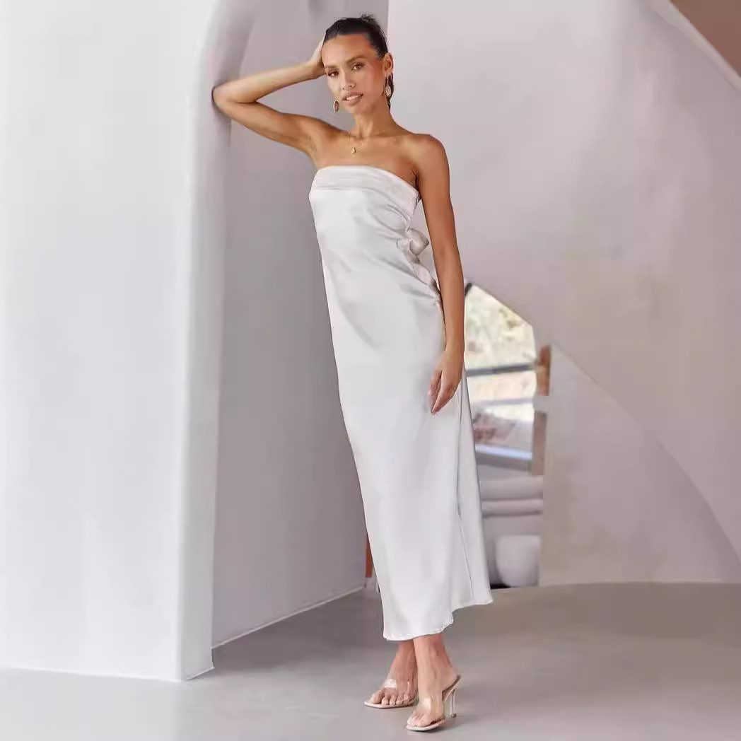 New Elegant Socialite Satin Backless Tube Top Sexy Dress Women