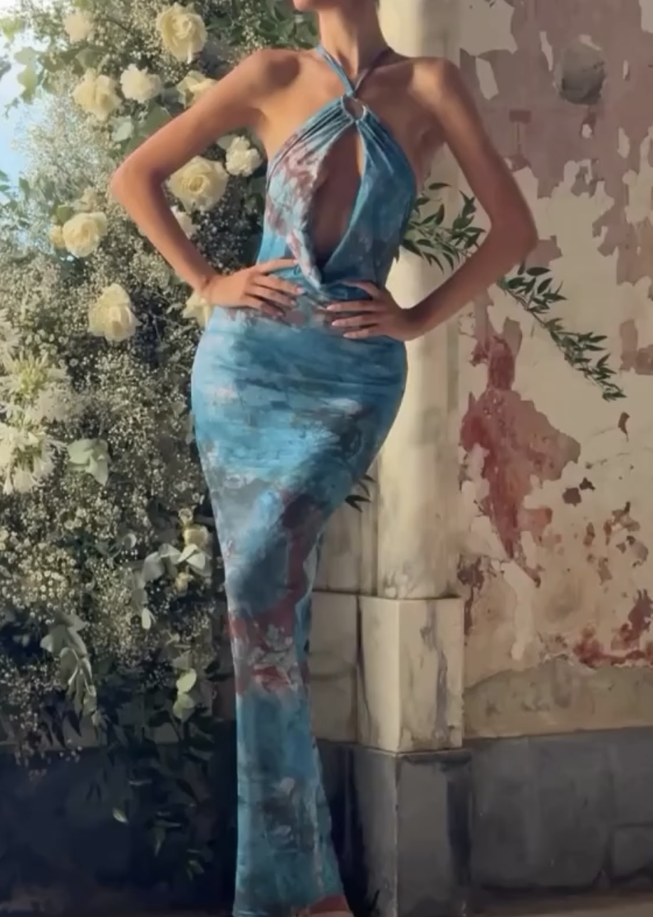 Personalized Printed Sleeveless Halter Sheath Dress