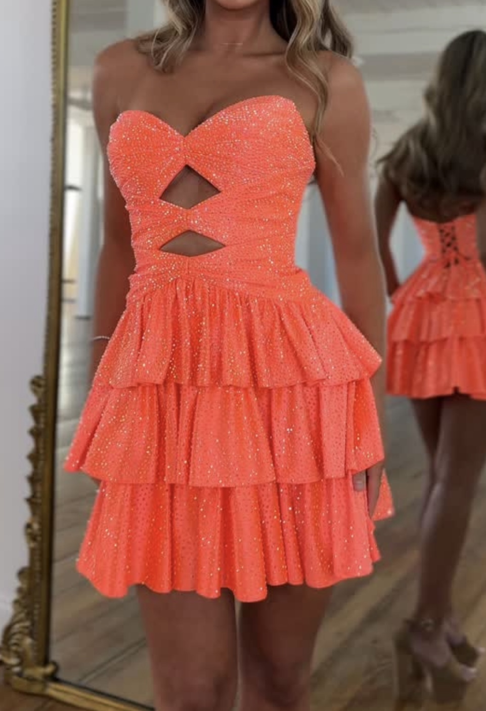 Sexy Bandeau Shiny Cut-out Ruffled Cake Dress