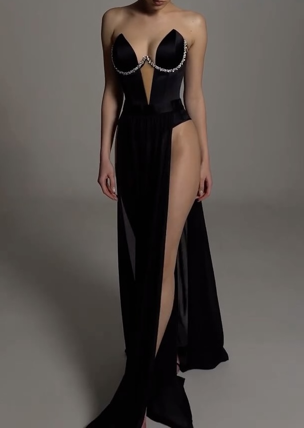 Sexy Diamond Edge Wrapped Chest V-neck Double Slit Dress