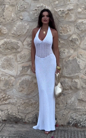 Sexy Halter Deep V-neck Sleeveless Backless Hollow out Slim-Fit Fishtail Skirt