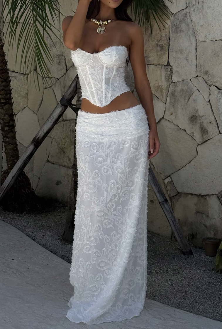 Sexy Lace Backless Top Irregular Skirt Two-Piece Set