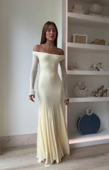 Sexy off-Neck Long Sleeve Slim Fishtail Pleated Skirt