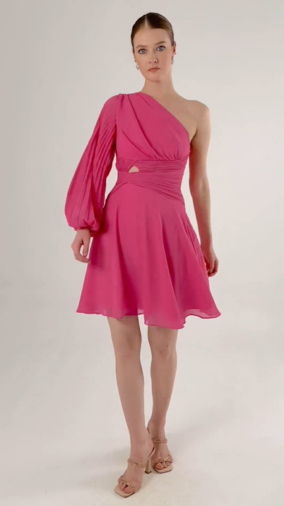 Sexy One-Shoulder Long Sleeve Slim Fit Pleated Cutout A- line Skirt